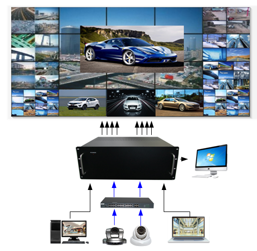 高清數(shù)字解碼矩陣自帶內(nèi)拼接、分割、開(kāi)窗、漫游功能,廣泛應(yīng)用于道路交通、平安智慧城市監(jiān)控、軍隊(duì)、工廠、學(xué)校、銀行、商場(chǎng)、大型公共場(chǎng)所、森林防火、智能樓宇等各類(lèi)場(chǎng)合的視頻監(jiān)控中心。實(shí)現(xiàn)前端的網(wǎng)絡(luò)視頻信號(hào)的解碼,及對(duì)大屏顯示的控制。